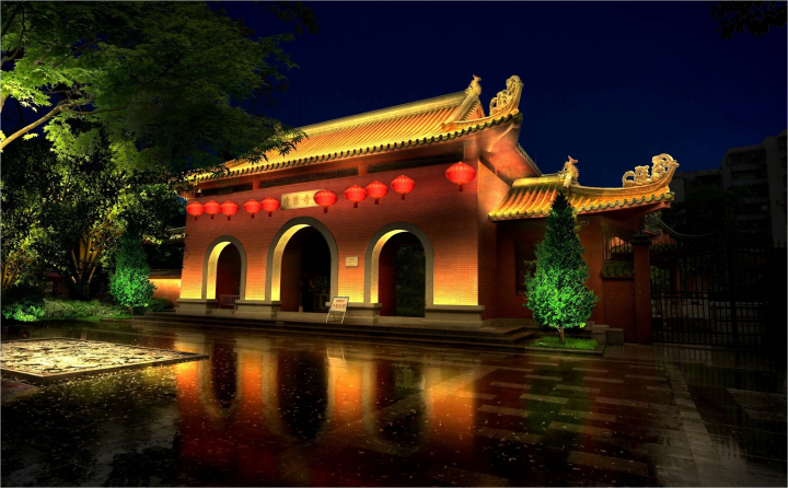 南岸傳統(tǒng)城區(qū),本地居民較多,擁有龍母廟、黃岐公園、石門中學等多個擁有歷史意義的重要節(jié)點,燈光應(yīng)以穩(wěn)重、大氣為主,根據(jù)區(qū)域劃分,加入相應(yīng)主題的燈光元素,以烘托其濃厚的本土文化。